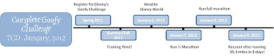 As promised in my original 12 in 2012 post, the following are some timelines to help me stay on track with the goals I’ve set for the upcoming year (click on each to enlarge). After creating my 2011 yearly review, I realize that it’s very important that I set some smaller goals along the way so that I don’t end up losing sight of the big picture (after all, if you fail to plan, aren’t you really just planning to fail?). For some goals such as running 25 miles/week, it didn’t make sense to create timelines, so additional details for how I plan to accomplish those are included below. Here’s to hoping that 2012 is an incredible year for everyone!!
